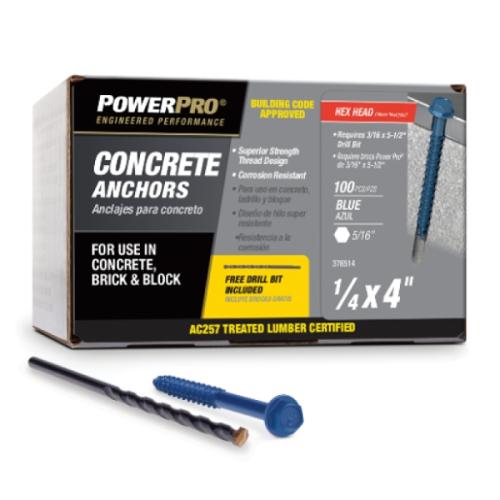 376532 1/4IN X 2-1/4IN POWER PRO TAPCON SCREW FLAT HEAD 100 COUNT