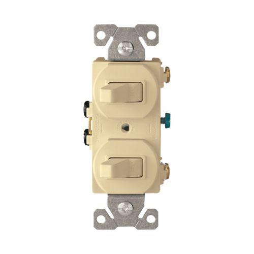 277V-BOX 15A 120V DUPLEX COMBO SWITCH SINGLE POLE W/PILOT LIGHT IVORY