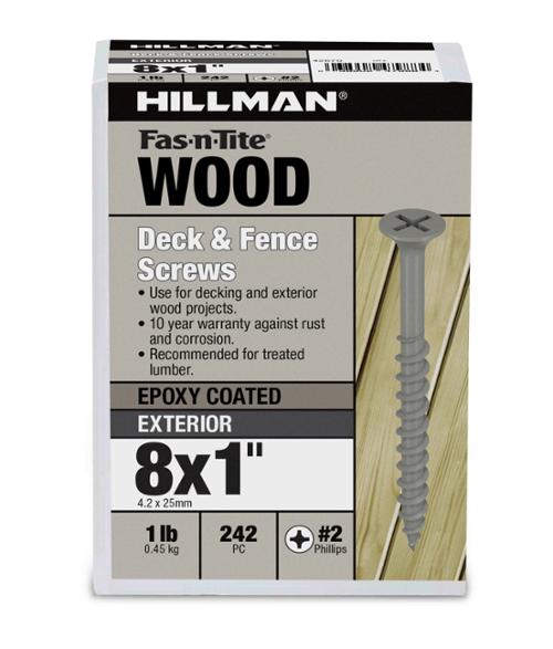 Compact, strong, and built for long‑lasting exterior performance, the Model 42670 #8 x 1 in. Deck Screws are ideal for applications requiring short, secure fastening in outdoor environments. Protected with a durable 10‑year exterior‑grade coating, these screws resist rust, moisture, and harsh weather exposure—making them perfect for pressure‑treated lumber and outdoor woodworking projects.