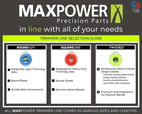 Maxpower's roundcut trimmer line is made from sturdy nylon components - great for homeowner/residential use. Provides consumers with a quality cutting line. Small loops.