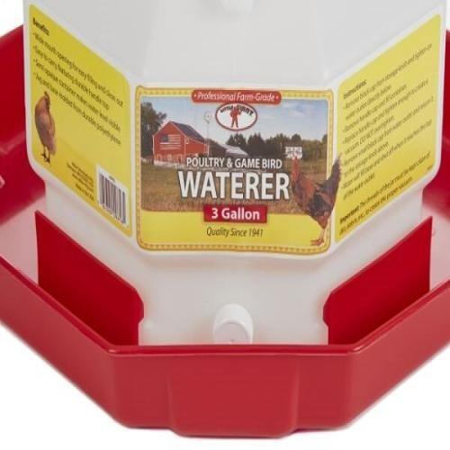 Hydrate your fowls with ease with the Miller Manufacturing 3-Gal Plastic Poultry Fountain. This large capacity water storage system creates an automatic flow. The poultry equipment has a rugged handle that makes it easy to transport around the yard wherever it is needed. It is dent proof and easy to refill. For stability, this plastic fountain's jar snaps compactly onto the base to prevent accidental knocking by excited drinkers. Miller Manufacturing 3-gal Plastic Poultry Fountain: Poultry fountain Large capacity waterer Dent proof Easy to fill Vacuum sealing cap creates an automatic water flow Rugged handle makes transport around the yard easy Jar snaps compactly onto the base 3-gallon plastic fountain