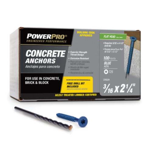 Product Overview: Tapcon concrete screws are the trusted solution for anchoring into masonry materials such as concrete, brick, and block. Model 376524 features a flat countersunk head for a flush finish, making it ideal for applications where appearance and secure fastening matter. Each box includes 100 screws plus the correct drill bit for hassle-free installation.