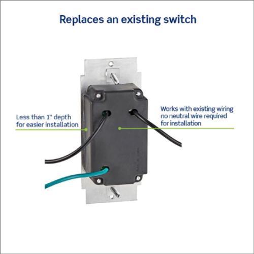 No Neutral Required – Installs in existing wiring systems without the need for a neutral conductor