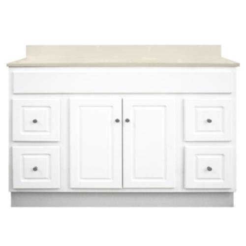 Vanity Cabinet, Top Blank, 21 in Depth, Shaker White Painted, Satin Nickel Knob Hardware, 34-1/2 in Height, Wood, 2 Doors, 4 Drawers, 48 in Width